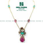 Fancy Victorian Peacock & Ruby, Emerald Beads Triple Cut Diamond Mala